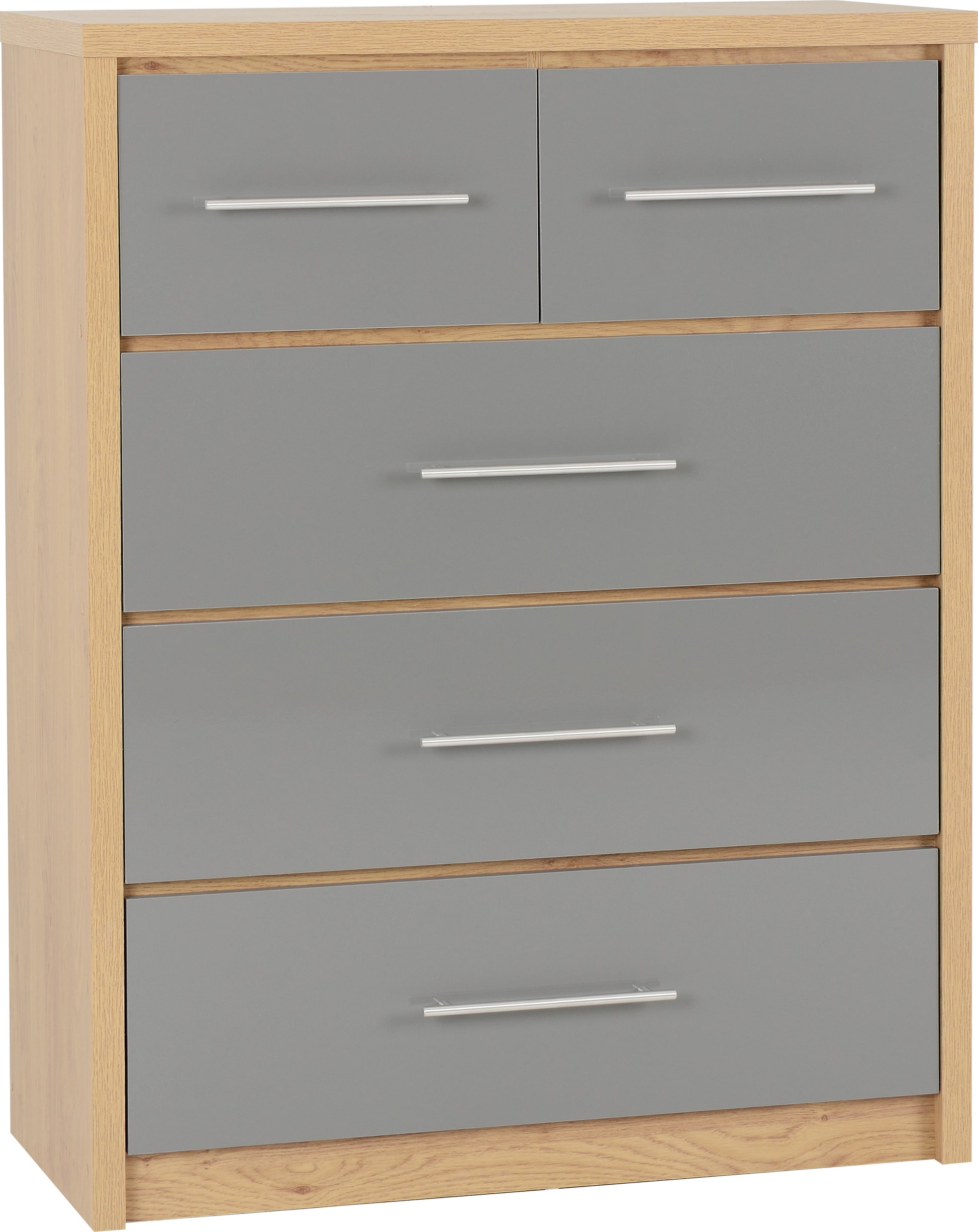 Seville 3+2 Drawer Chest - Grey Gloss/Light Oak Effect Veneer