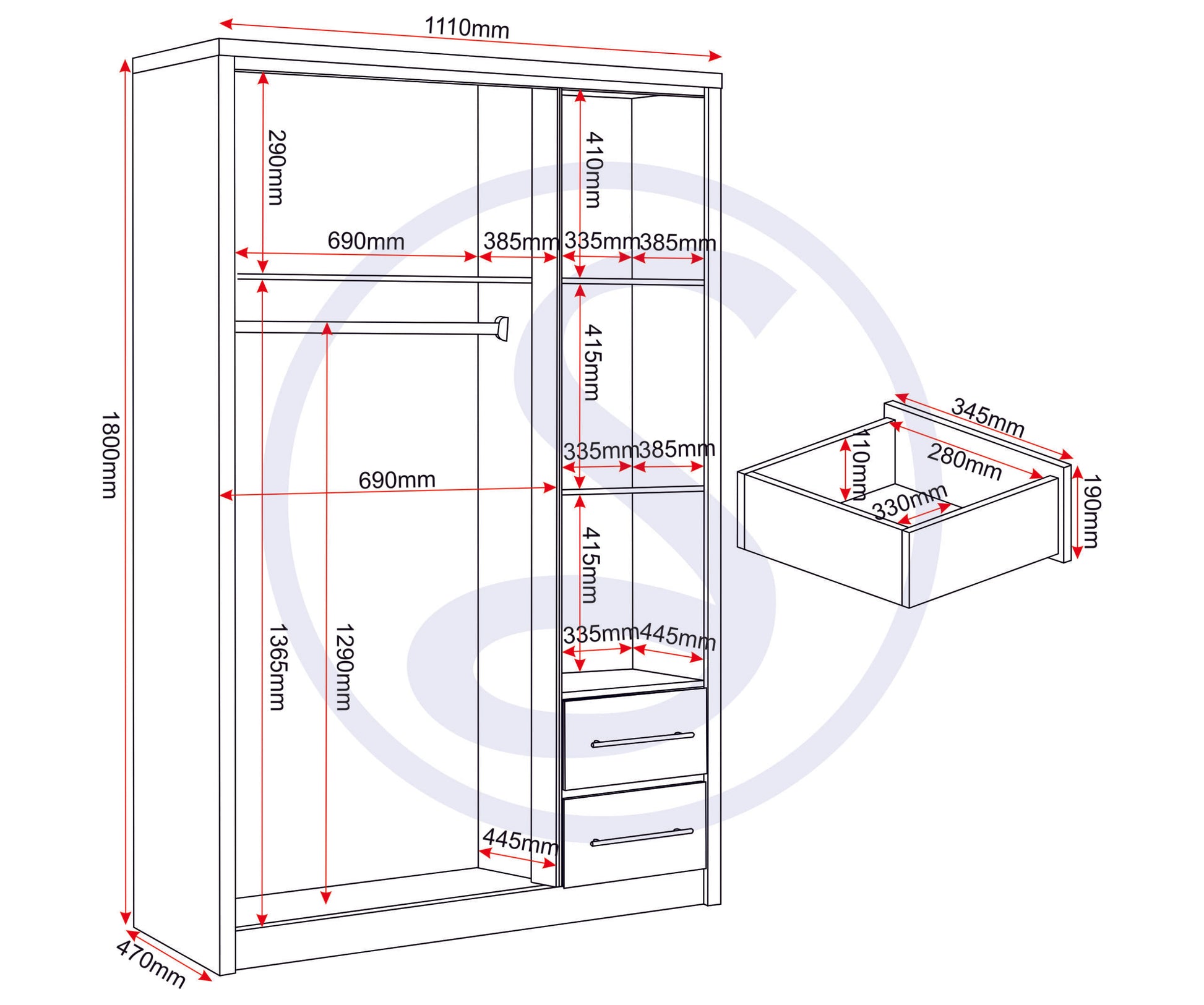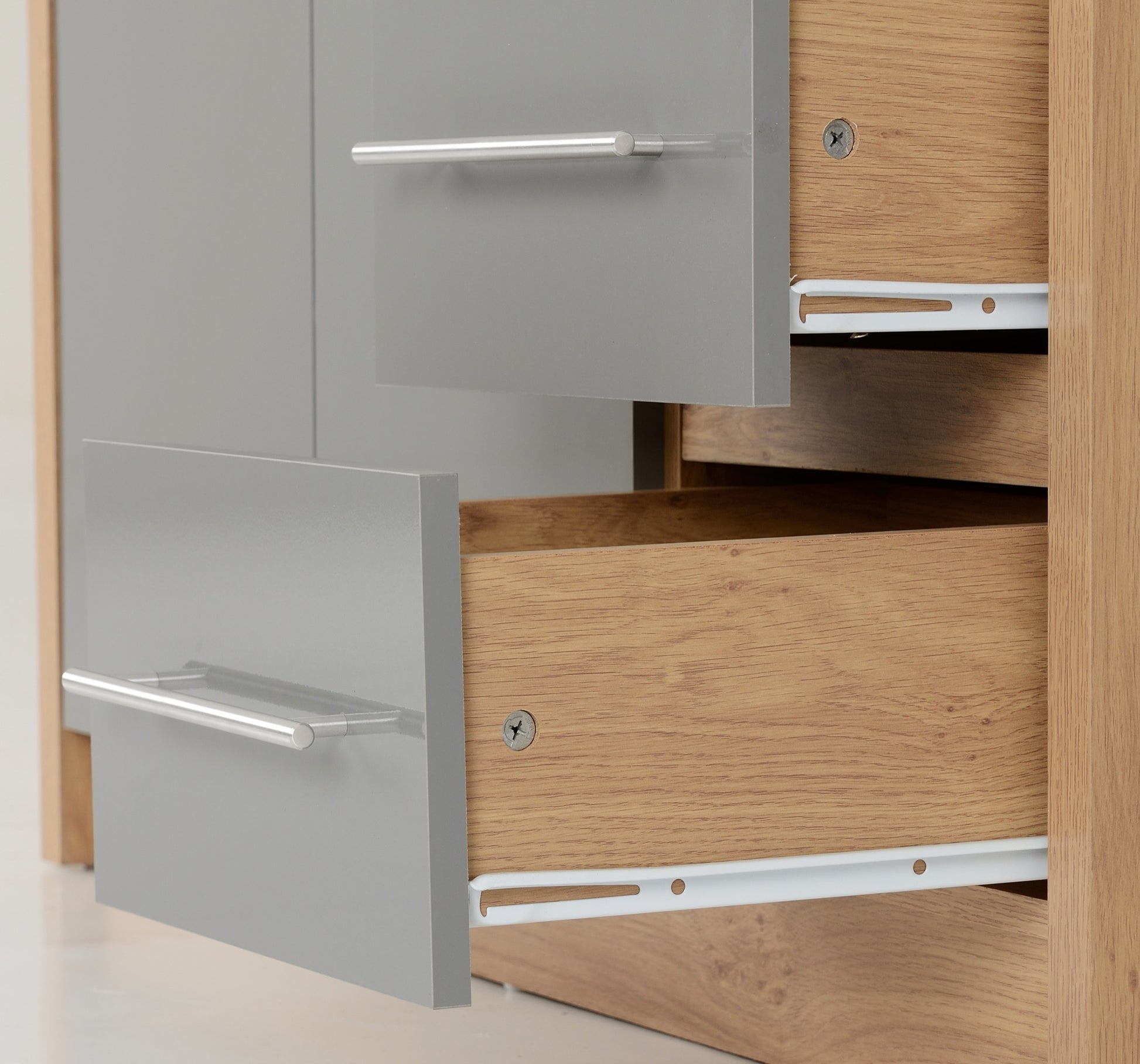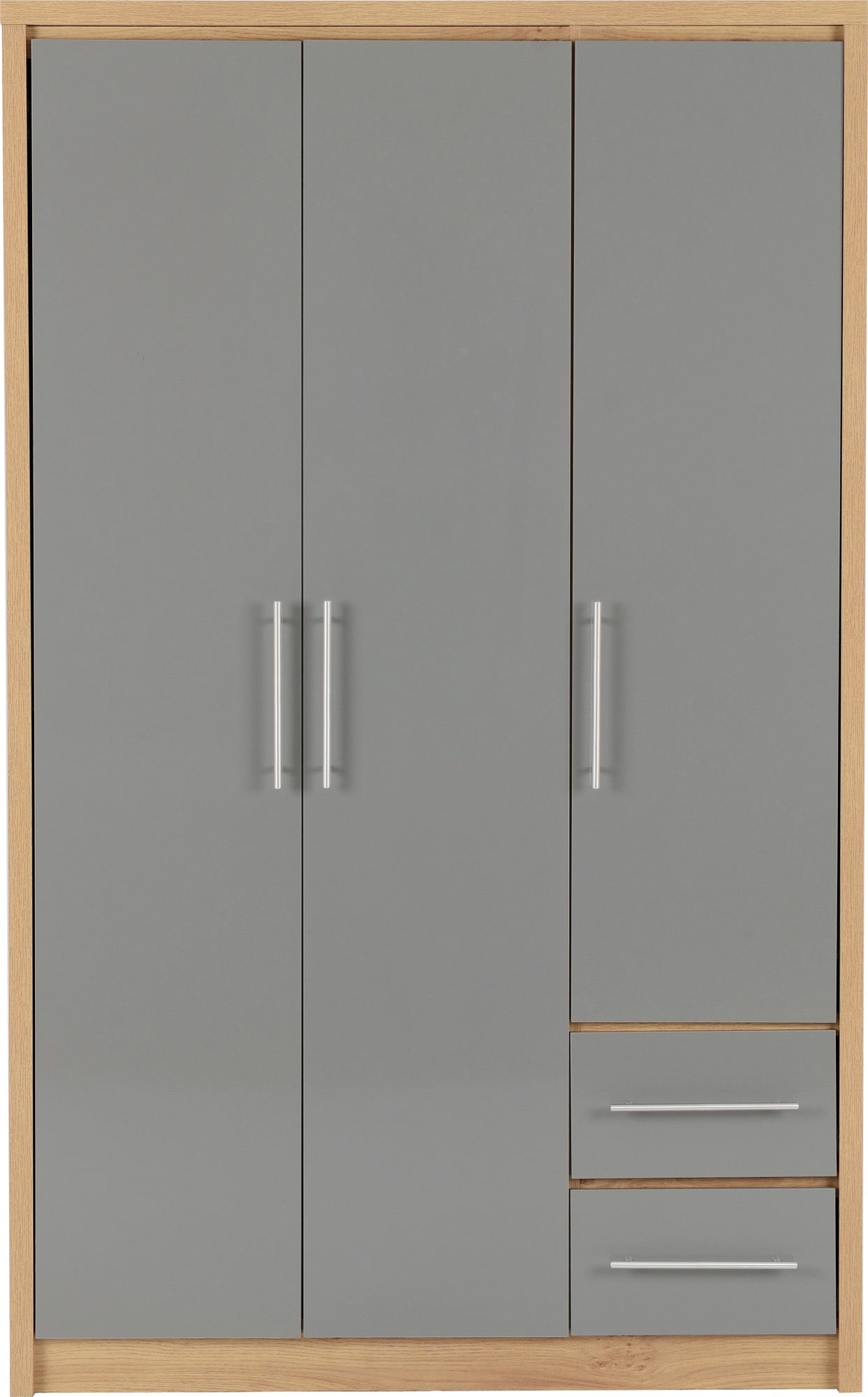 Seville 3 Door 2 Drawer Wardrobe - Grey Gloss/Light Oak Effect Veneer
