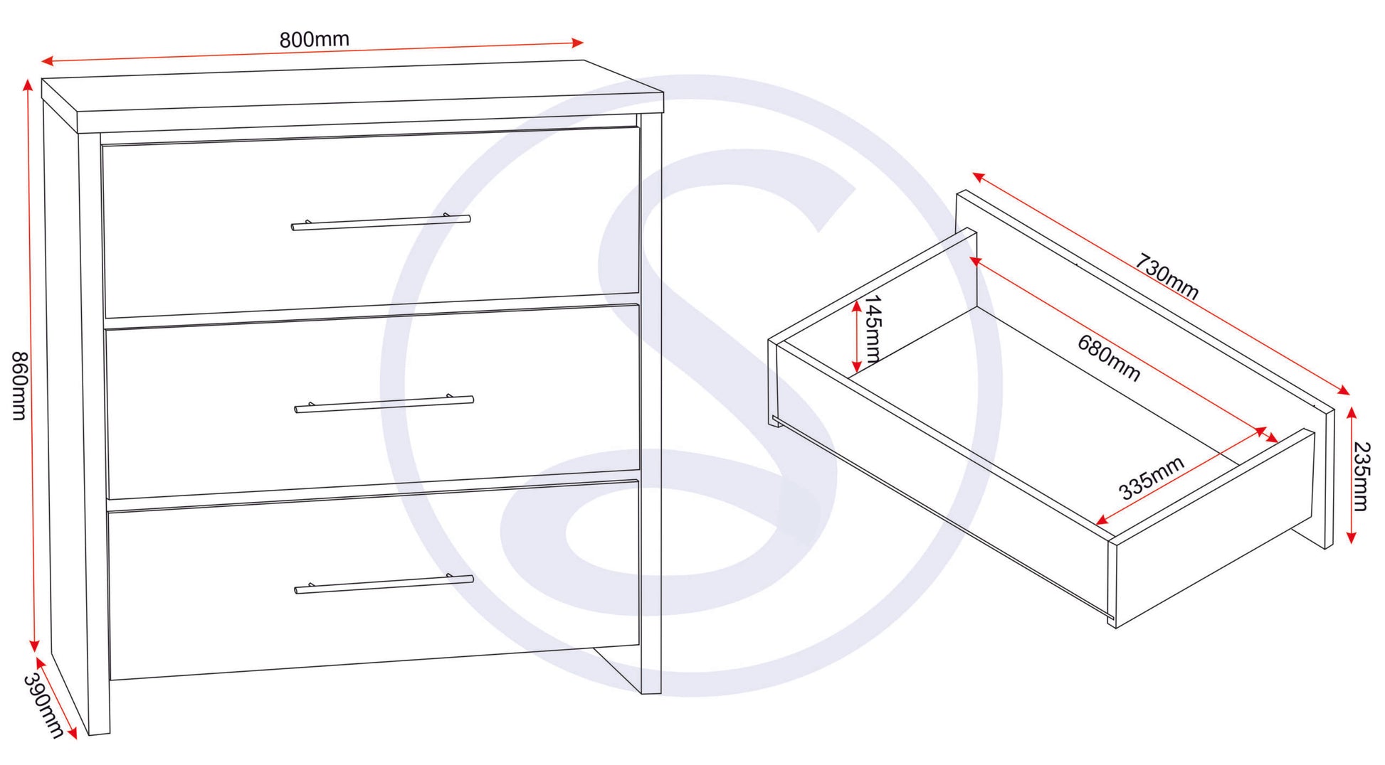 Seville Bedroom Trio Set - White Gloss/Light Oak Effect Veneer