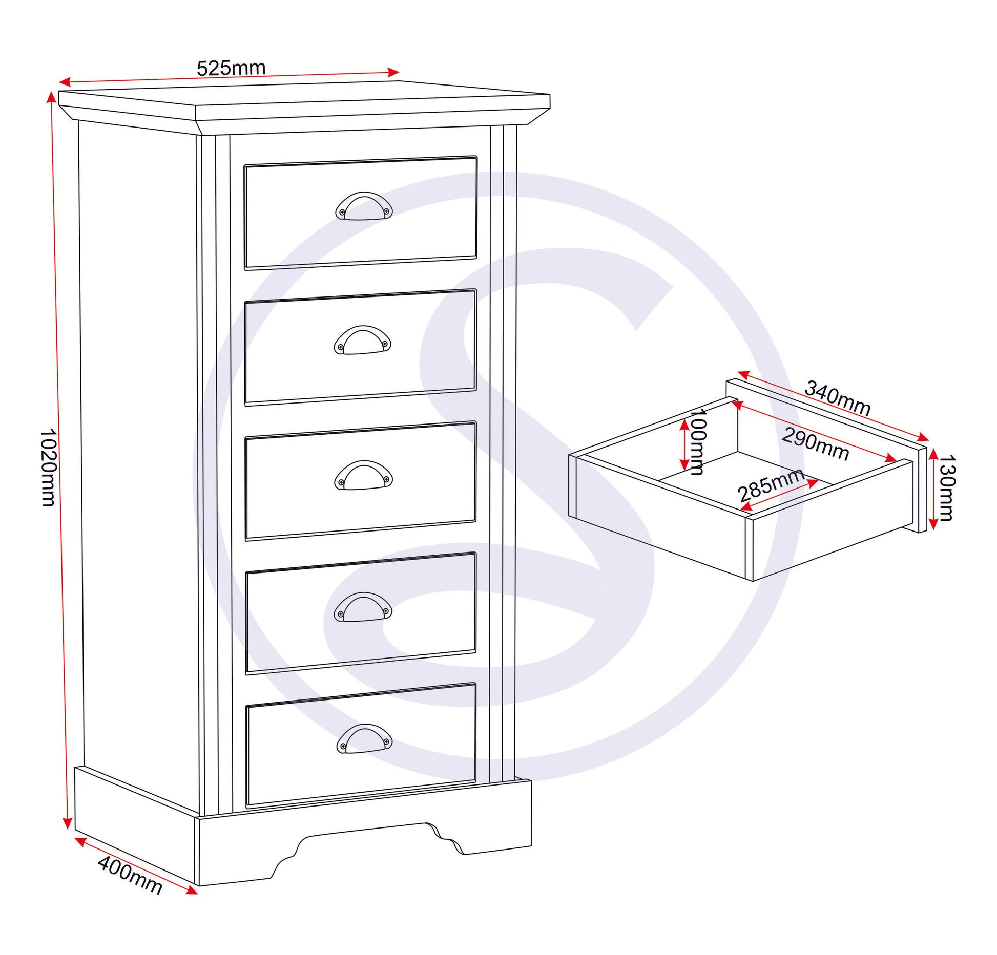 Toledo 5 Drawer Narrow Chest - Grey/Oak Effect