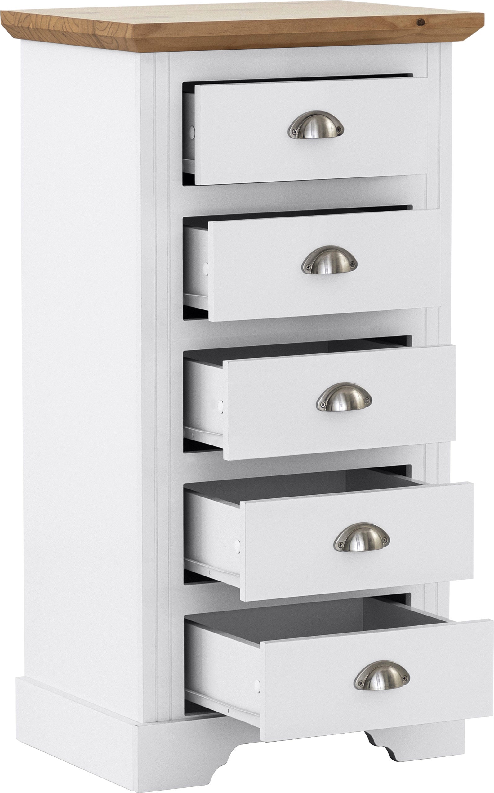 Toledo 5 Drawer Narrow Chest - White/Oak Effect